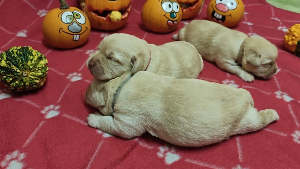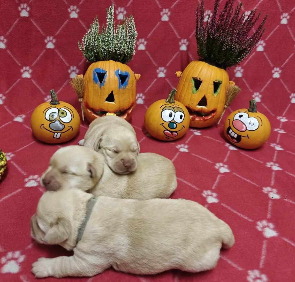 Jessy´s Welpen in gelb und chocolate sind da. Kann der Herbst besser beginnen?